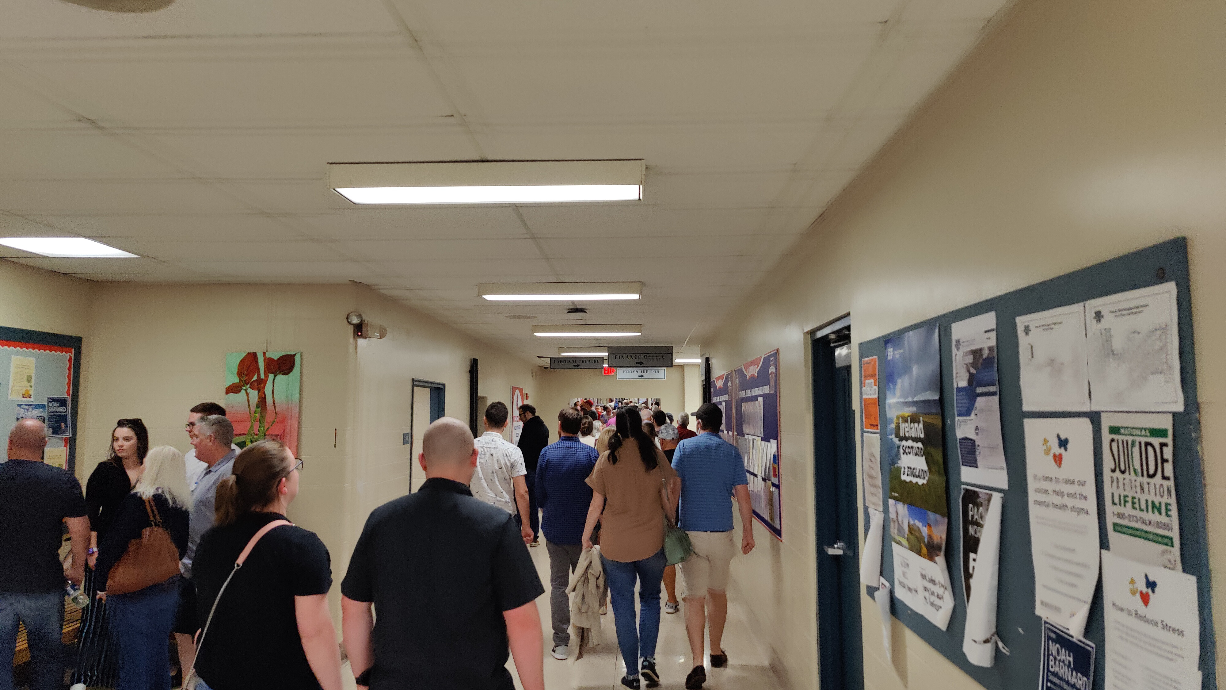 Attendees at the Thomas Worthington High School Alumni Tour, Shown Walking Down a Hallway