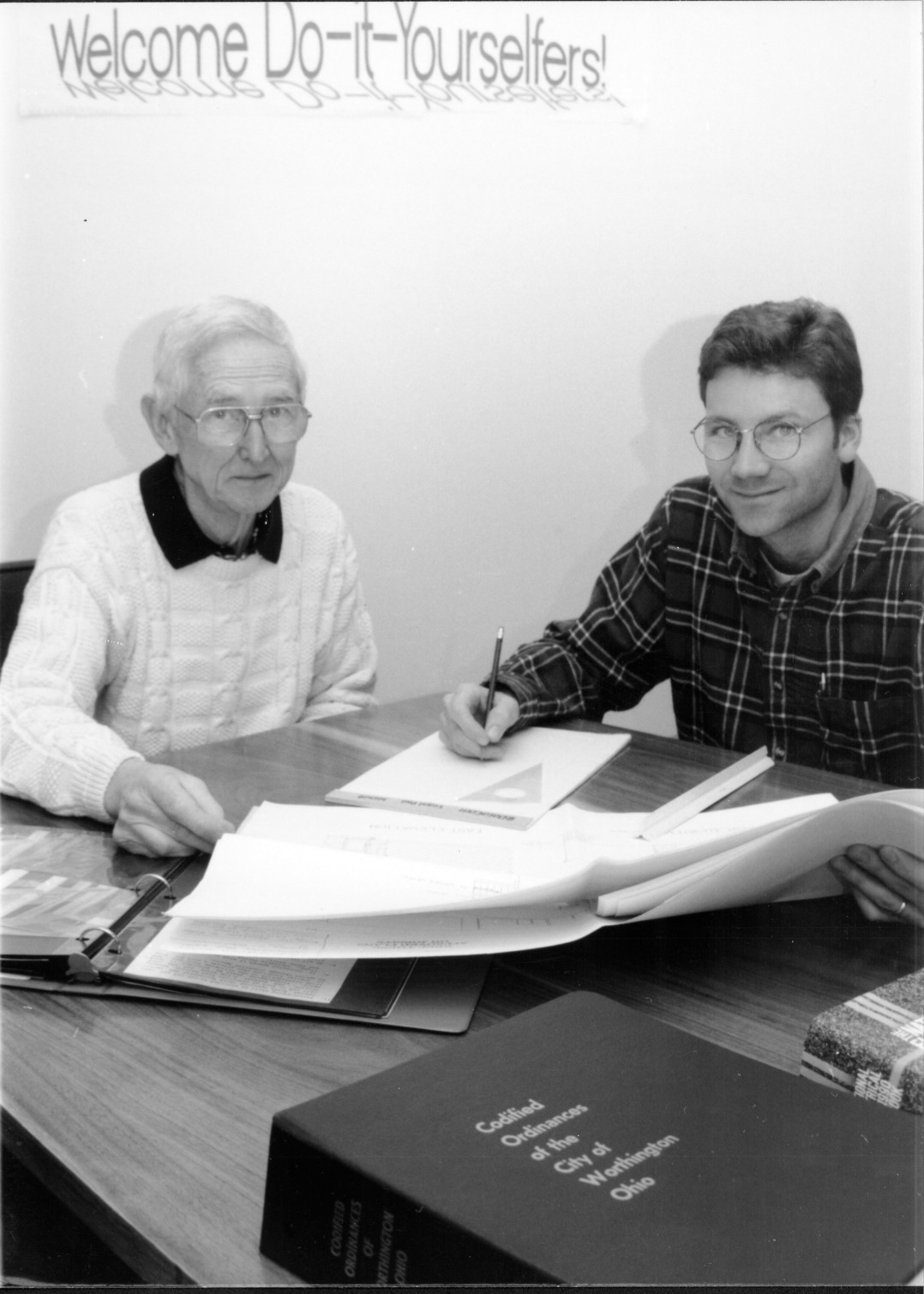Field inspector Mark Nemec advises "do-it-yourselfer" Richard Dagefoerde. The Division of Building Regulation conducts "Do It Yourselfer Day" once a month, designed to assist homeowners with planning home improvement projects. Assistance is also provided in obtaining permits and building code compliance.