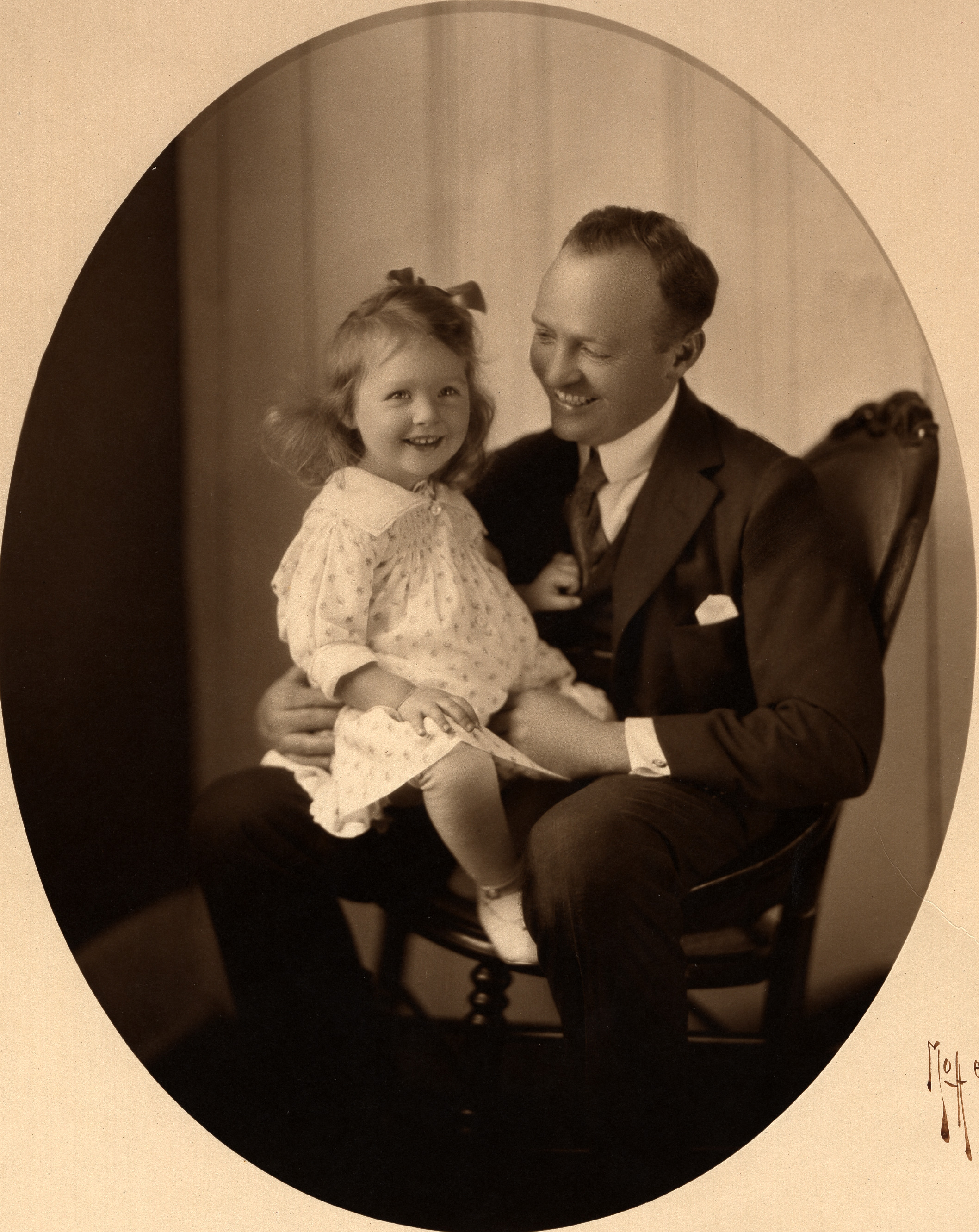 This photograph shows Frame C. Brown seated and holding his young daughter Marie (Molly) Brown (later Molly Brown Caren Fisher) on his lap.
