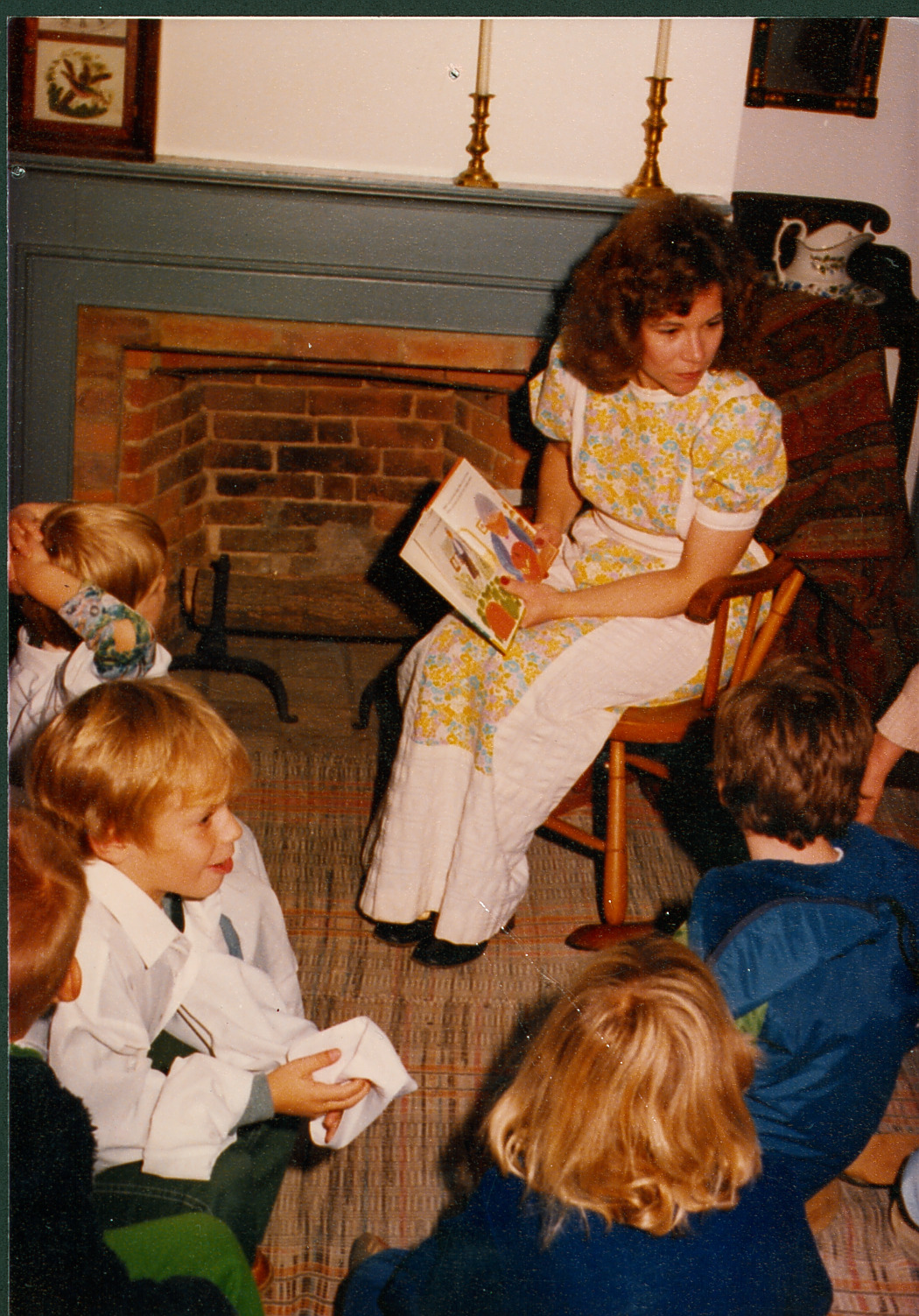 Stephanie Augsberger reads Halloween stories to children during festivities at the Orange Johnson House, 956 High Street, ca 1978.