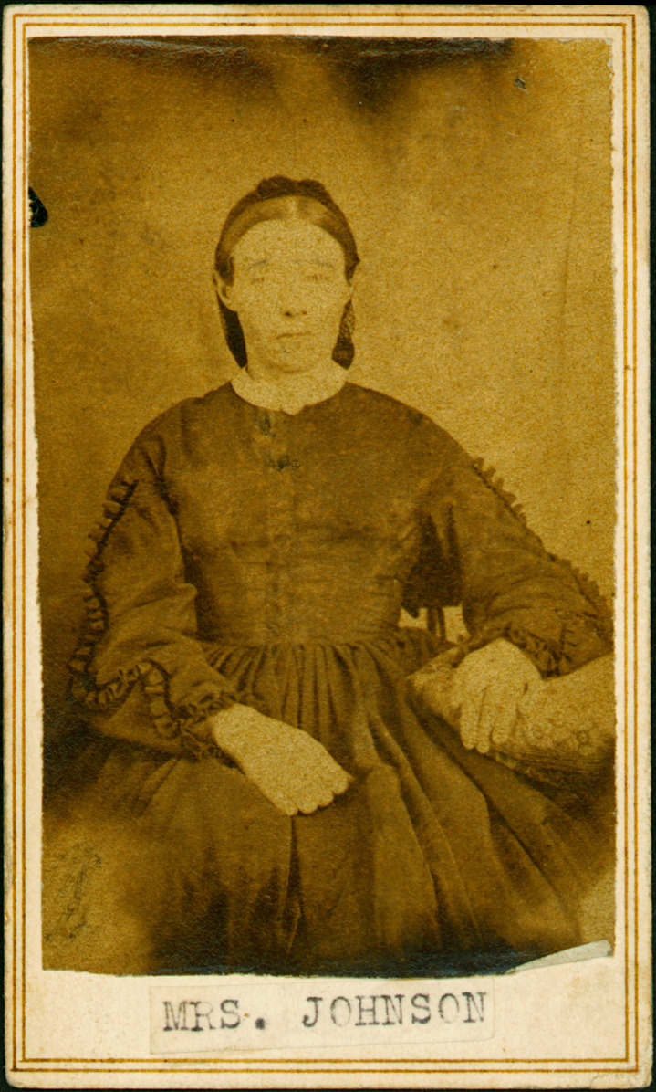 This is a photograph of Harriet F. Johnson (b. 1826). She was the wife of Reverend Silas Johnson, who served as minister for Worthington Presbyterian Church from 1857-1861.