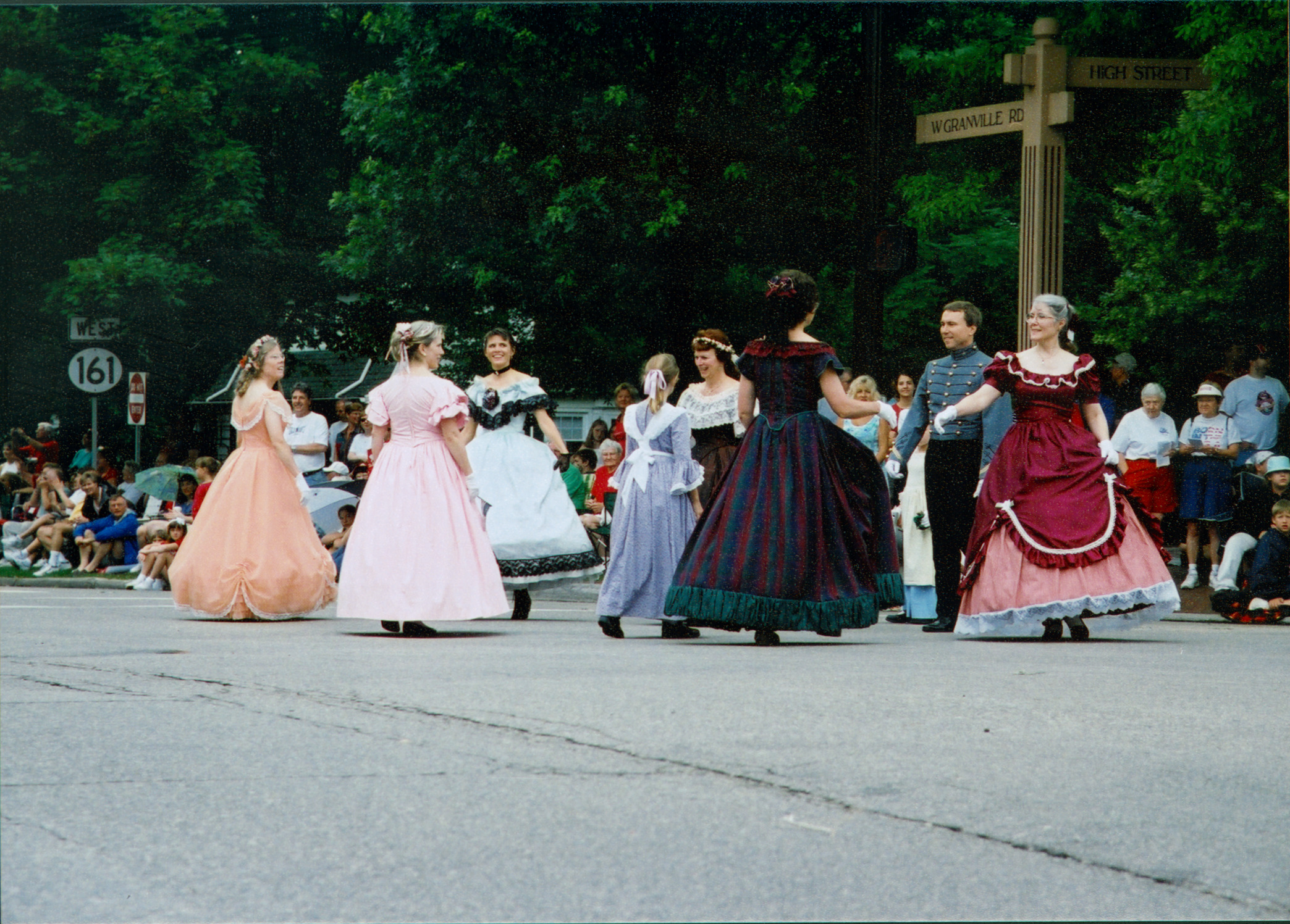 A Homecoming Parade was held on Saturday, July 5, 2003 as part of the City of Worthington's Bicentennial Homecoming Celebration. History was brought to life through a series of floats that celebrated the 200 years from Worthington's founding in 1803 to the Bicentennial celebration in 2003. The parade entry pictured here is the Worthington Women's Club. Members of the group dressed in colonial costumes and danced the Virginia Reel.