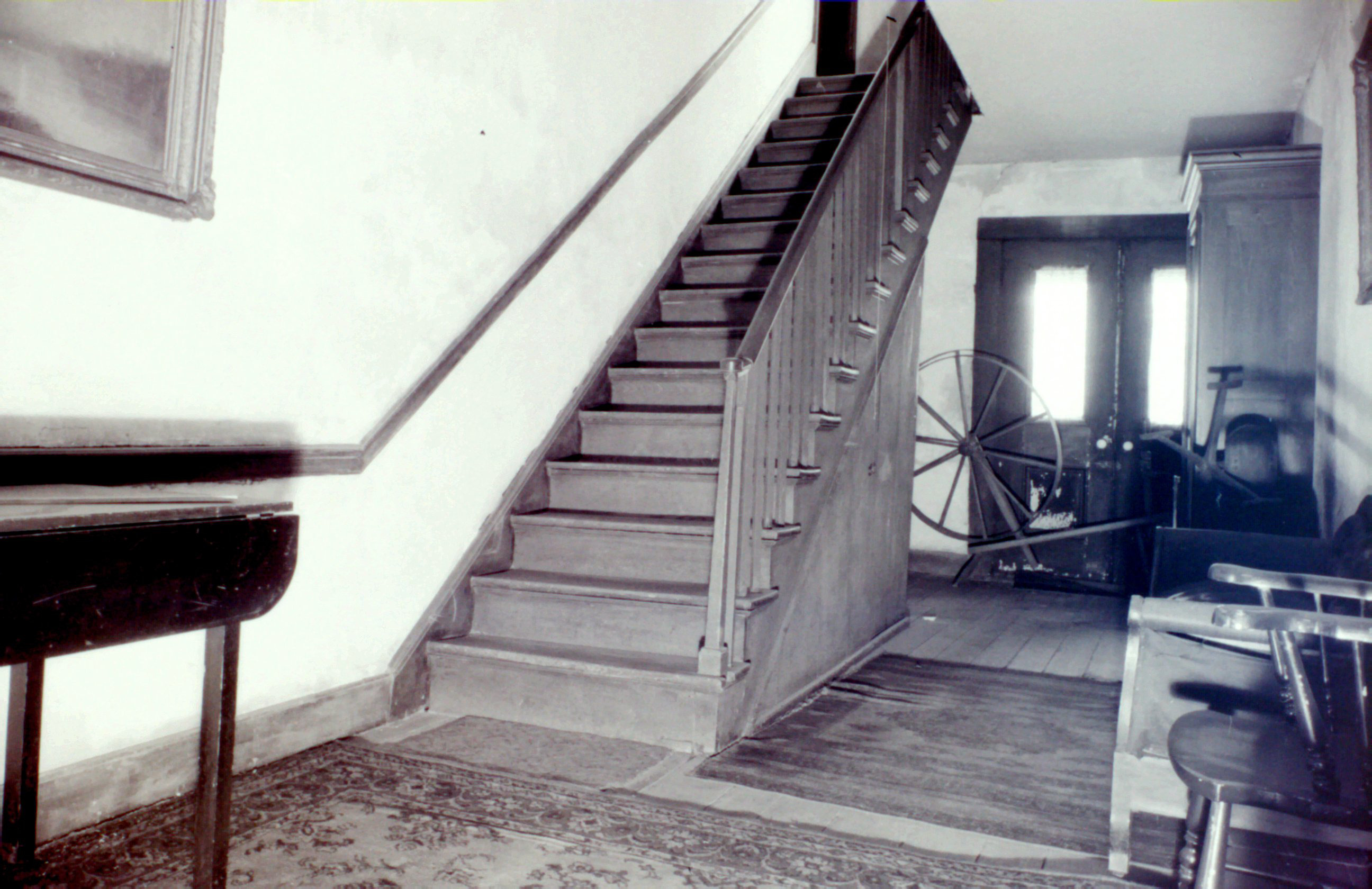 This image of the interior of the Griswold Inn was obtained from a series of negatives converted to digital images. The Griswold Inn stood on the east side of High Street, just north of the Village Green, and was built by Ezra Griswold in 1811 to offer travelers a place to stop. Ezra operated the inn until 1816, when he passed it down to his son, George H. Griswold. The structure was later converted from a tavern and inn into a residence, where Ruth Griswold, the last of the family to occupy the building, lived. Though the Griswold Inn Historical Foundation attempted to raise funds to purchase and restore the inn to use it as the Worthington Historical Society Museum, the building was razed in 1964. Gilbert Coddington, an architect who ultimately helped the Historical Society restore the Orange Johnson House, captured this image series before the demolition of the inn.