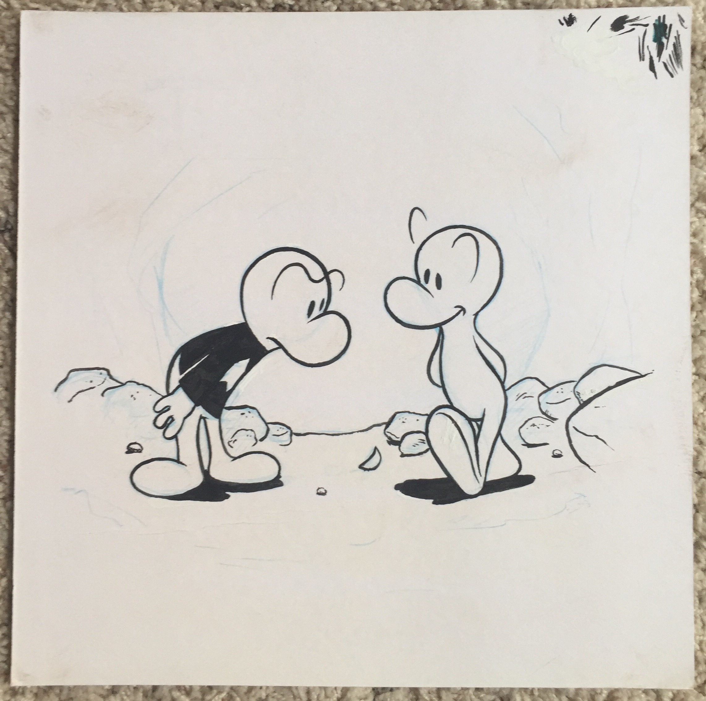 Pictured here is an early inked sketch of the characters Fone Bone (right) and Phoney Bone (left) by artist Jeff Smith.