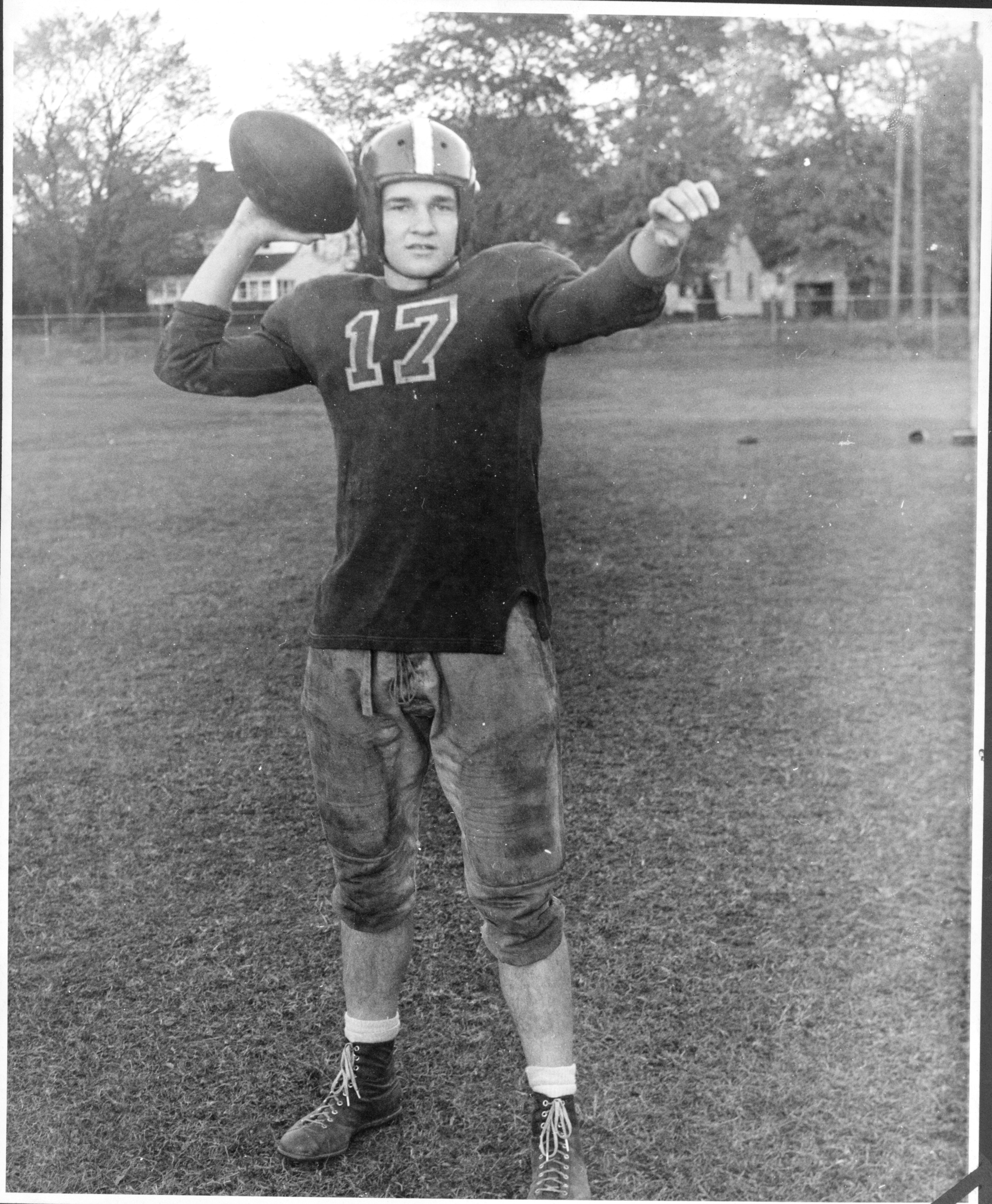 Worthington High School football team Halfback, Joe Neds was also the team captain. Neds led the school's team in scoring. He was a member of the 1946 graduating class.
