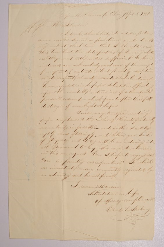 This letter was written to Mary Johnson of Worthington, Ohio from Charles Stickney of Republic, Ohio. It is a second appeal from a hopeful suitor to begin a correspondence with her. He begins this letter by mentioning that an earlier letter he sent her was unanswered and questions whether it was even received, if it was received with displeasure and therefore ignored, or if she has been too busy to respond. He then goes on request they begin a correspondence again and asks that she reply soon.