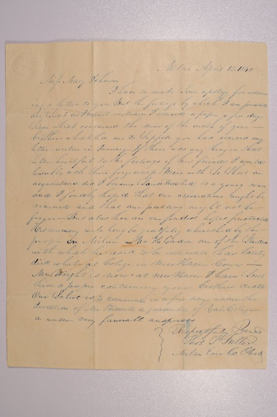 Letter to Mary Johnson of Worthington, Ohio from Thomas S. Fuller of Milan, Ohio