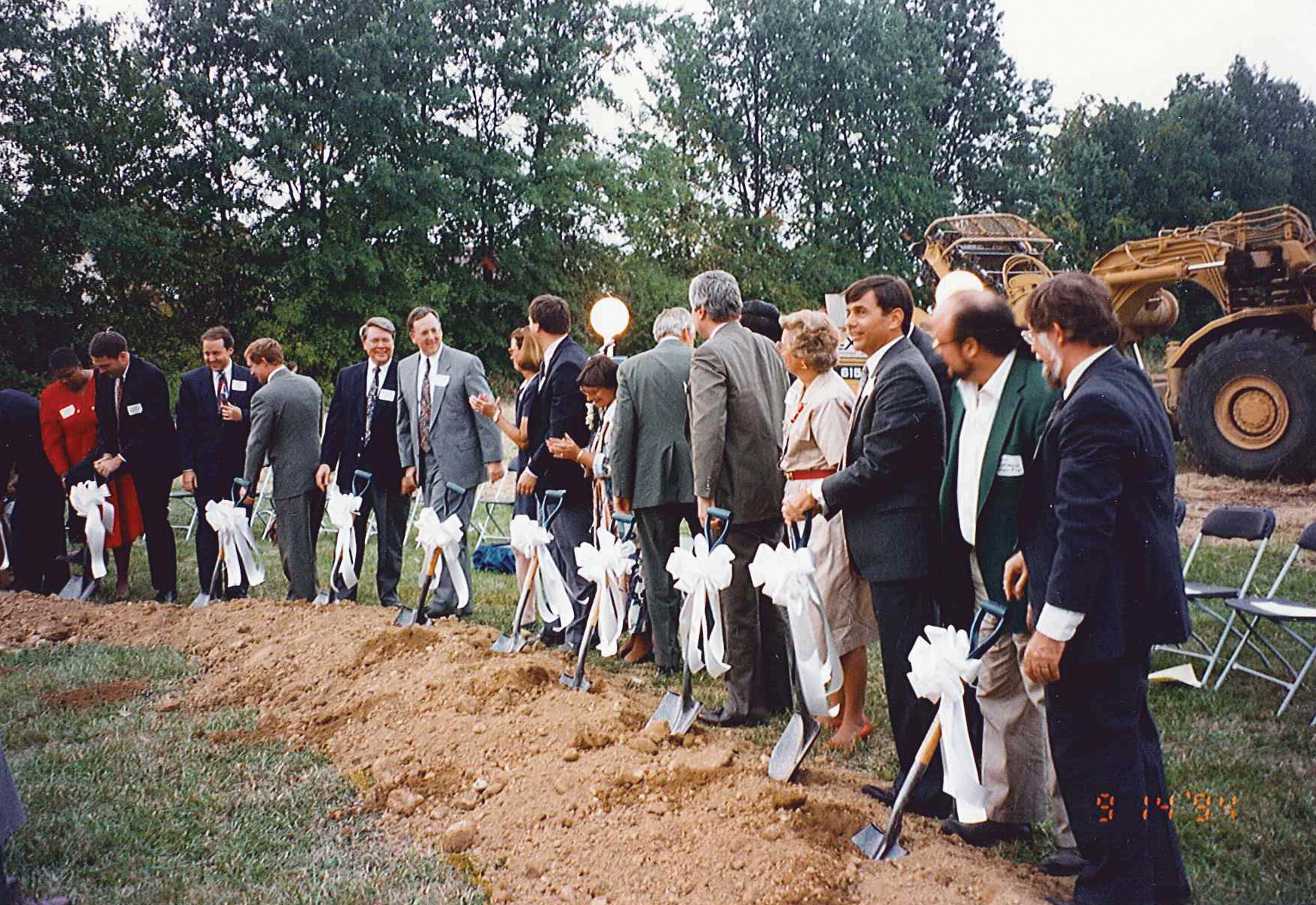 This photo shows the groundbreaking ceremony for the Northwest Library construction. The facility was groundbreaking in another way as well, in that it was the first library in Ohio and only the second in the country to be built and operated by two different library systems, the Columbus Metropolitan Library (CML) and the Worthington Public Library (WPL).