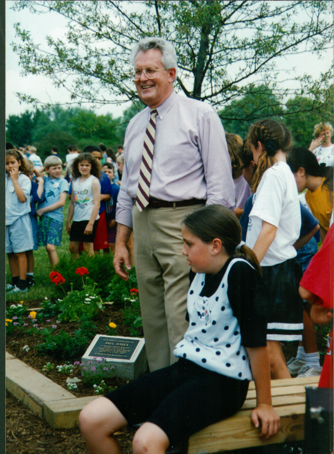 Worthington Estates School Principal (1978-1993) Paul Jones is pictured here at the time of his retirement. A plaque honoring his fifteen years of service at the school was installed on the school grounds. During his tenure Worthington Estates School had the largest elementary school population in the Worthington School District.