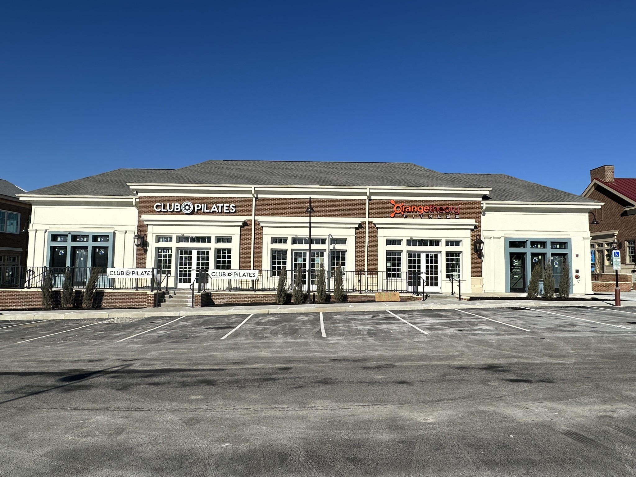 This photograph, taken in early 2023 and shared on the City of Worthington's Facebook page on February 05, 2023, shows (then) new businesses, Club Pilates and Orange Theory, the first to open at the Worthington Gateway commercial redevelopment. Located on the southwest side of the intersection of North High Street and West Wilson Bridge Road, this was previously the site of a Holiday Inn hotel. The hotel had occupied that space for decades and was demolished in late 2018 to make way for the mixed-use commercial redevelopment, at that time called The Village at Worthington Square. Construction was originally planned to begin in April 2020 but delayed until May 2021. The first businesses ready opened their doors in early 2023.