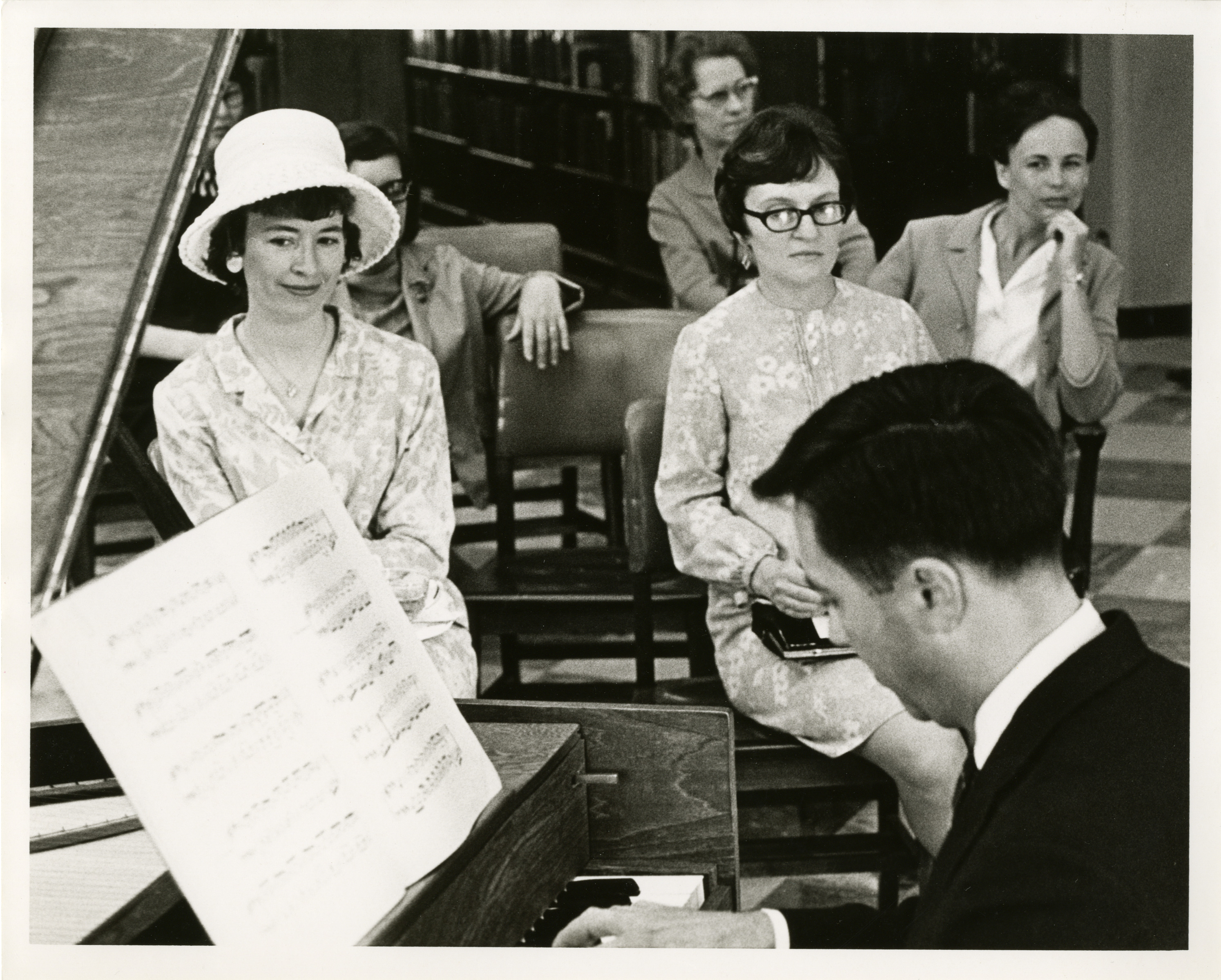 Photograph of Harpischordist and Audience at Worthington Public Library's National Library Week Celebration, 1968