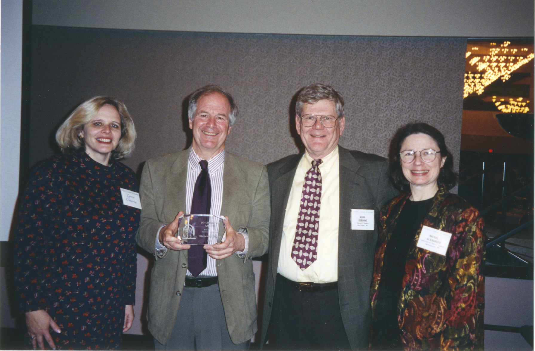 Photograph of Lynne Osborne, Steven Kellogg, Alan Osborne and Rachel Alexander is an image, with genre photograph, group portraits and awards.