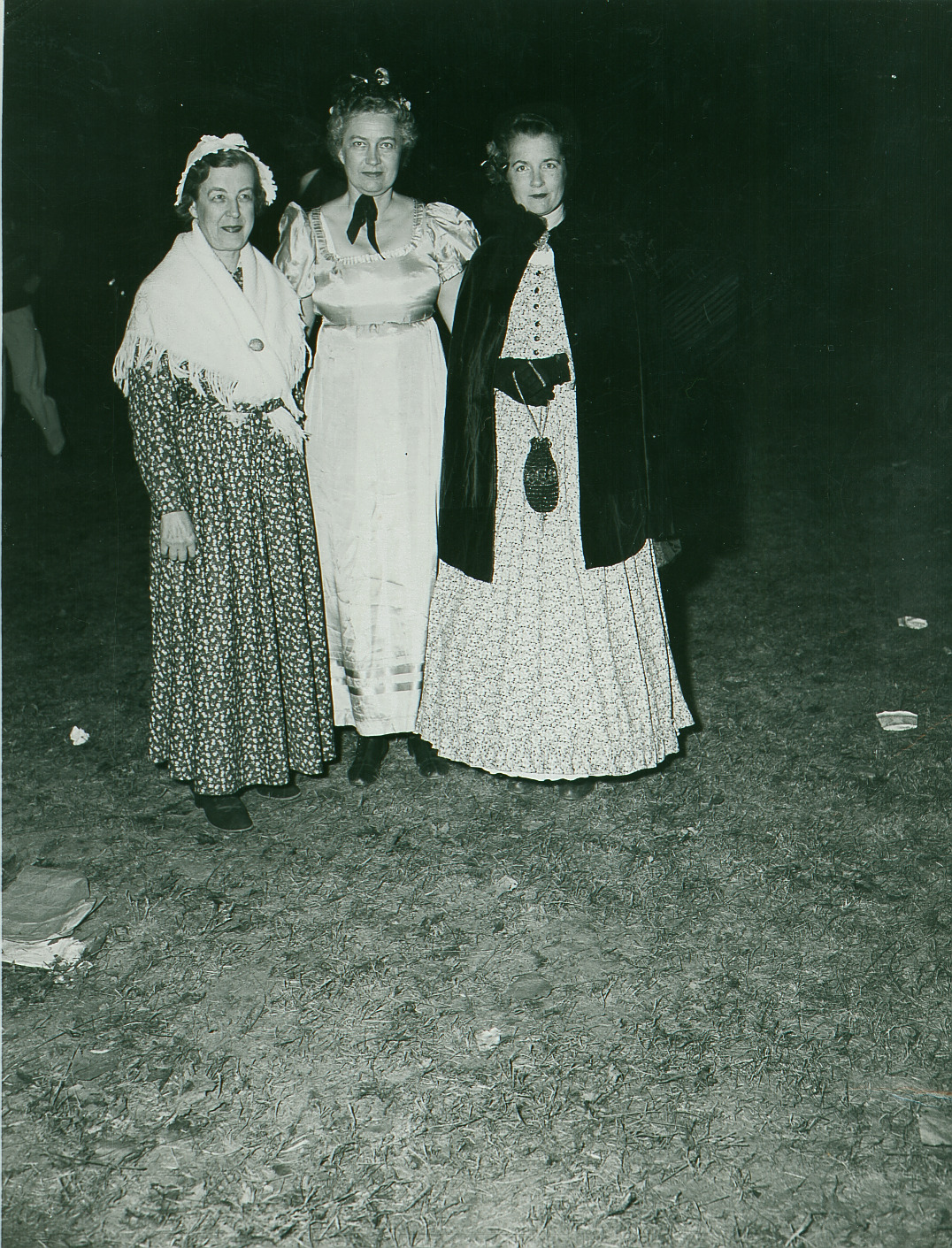 Three cast members of Worthington's Sesquicentennial pageant, the "Whetstone Venture," are pictured here. Left to right are Helen Snouffer, Mary Virginia Harding and Ruth Evans Harding.