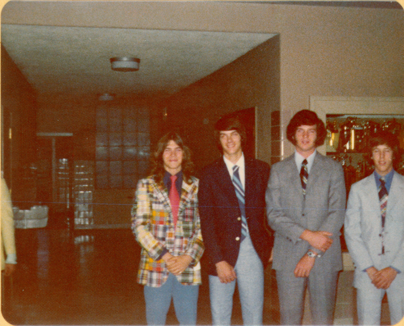 Worthington High School students are pictured modeling fashions that would be featured in the 1974 "Spring Fling" pre-prom style show. The event, sponsored by the Activity Club featured a fashion show, stage band, vocal groups, thespian skit, and door prizes. Models were Dean Blythe, Jeff Brown, Doug Burkhart, David Cavanaugh Jr., Aaron Combs, Mike Fluellen, Kevin Foley, Sylvia Harding, Sally Haywood, Jeff Knight, Linda Latimer, Lynne Livingston, Ross Long, Kay Morrison, Gayle Parkhill, Lisa Roby, Robin Rogers, Mary Scott, Tom Semans, Mark Stevens, John Strickland, Sheri Simcox, Barbara Warner, and Patt Whitehead.