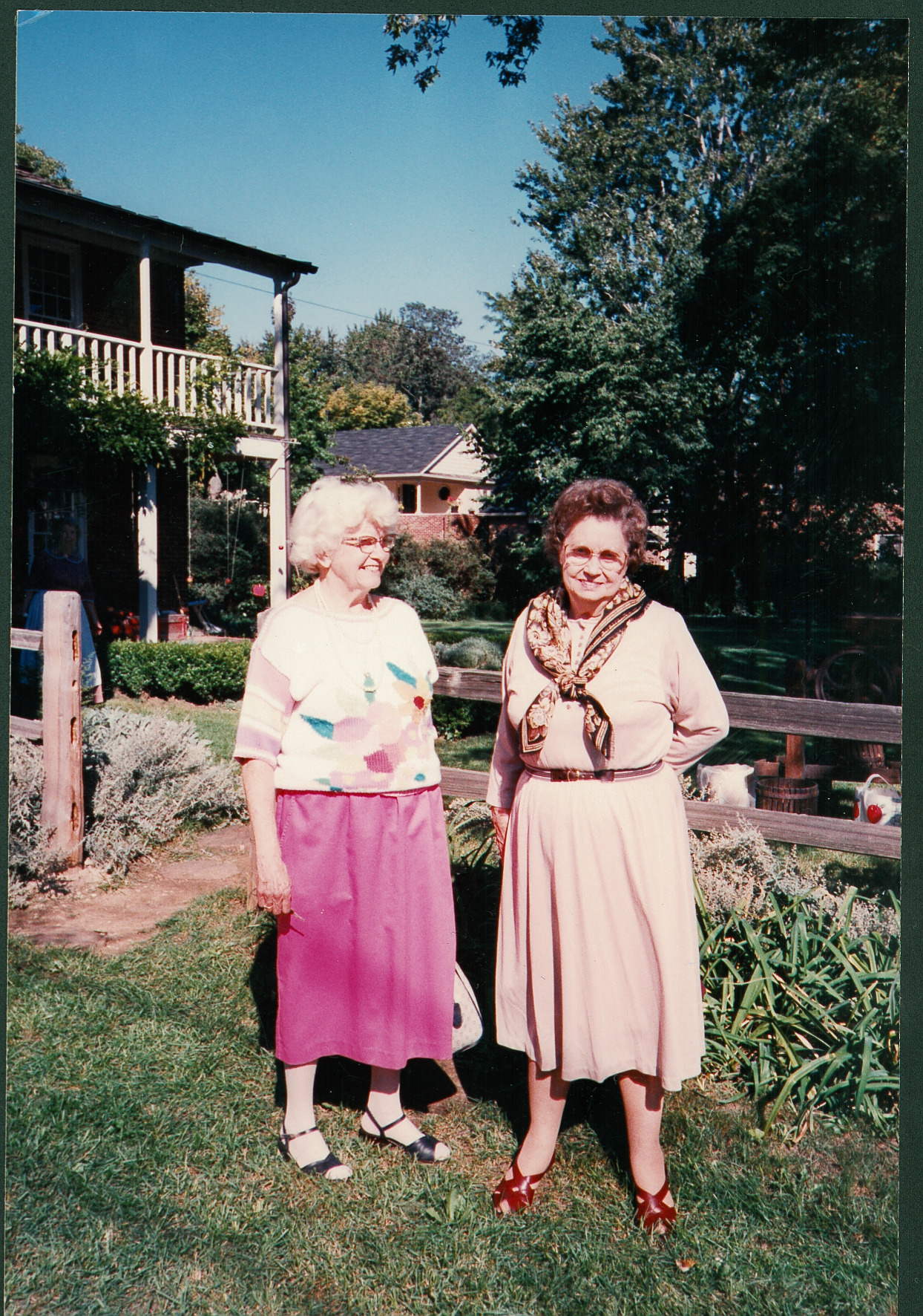 Worthington Historical Society storytellers Marti and Cindi Lou are pictured in the Orange Johnson House garden at a Johnny Appleseed Day celebration. The apple oriented day included games, crafts, food, and "apple lore". Folk lore legend tells that Johnny Appleseed spent time in the central Ohio area.