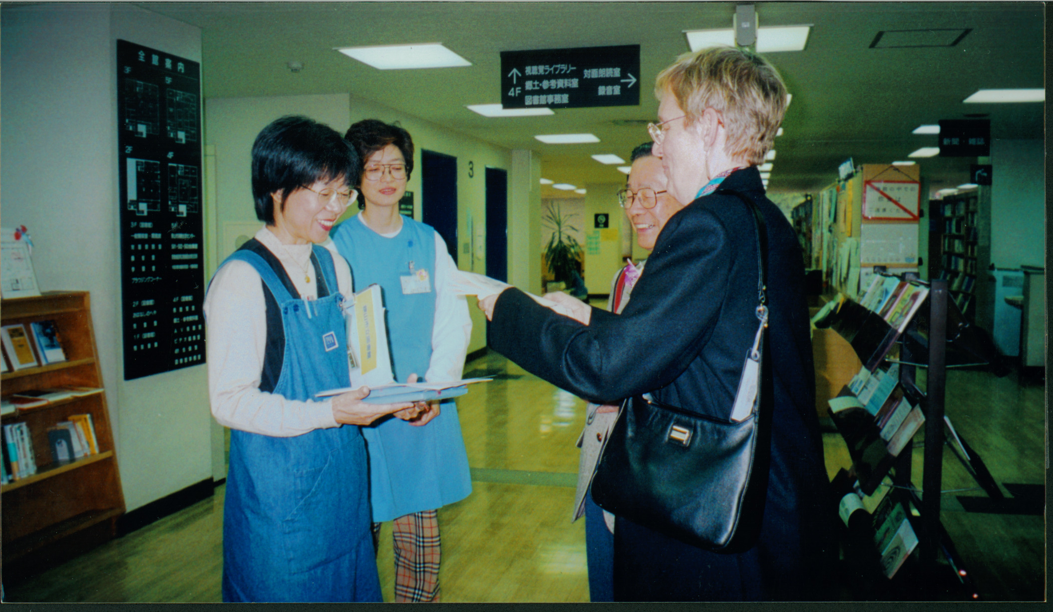 Miriam Utter, one of the 1999 WIFA delegates to Sayama City, Japan is pictured on a visit to the Sayama Public Library. The sister library of Worthington Libraries in Sayama.